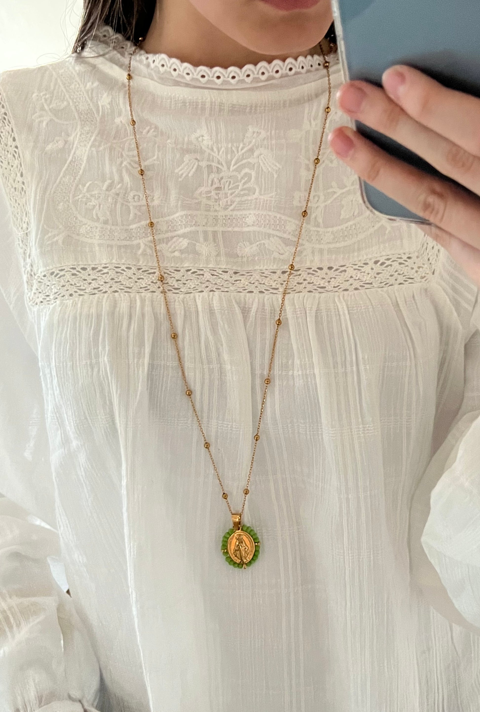 Sautoir chaine perlée Vierge-Marie